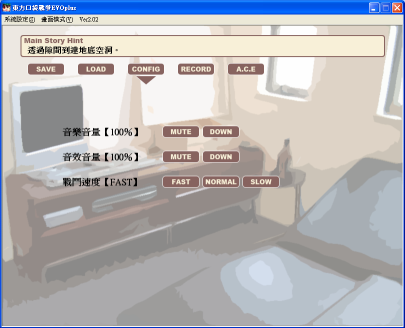AVG模式:如前面所述,劇情部份在「東方口袋戰爭EVO Plus」並不是很重要,這方面的功能部份也做得不是很齊全。除了調整音樂音量以及戰鬥速度外,遊戲本身並沒有提供類似真正AVG作品會有的控制文章速度、既讀等的功能。而系統功能介面也相當的樸素,和本作品華麗的人設等有段落差。
