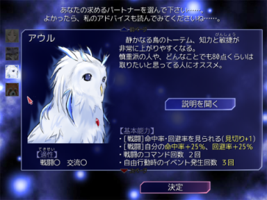這次有著「狼型」、「貓頭鷹型」、「浣熊型」三種能夠搭檔,不同的動物靈擅長的能力也有著非常大的差異。如果想要使用可愛而幾乎沒有個人戰鬥能力的「浣熊型」挑戰「武術運動部」的話,不是相當的高手恐怕連過關都會有非常大的困難。